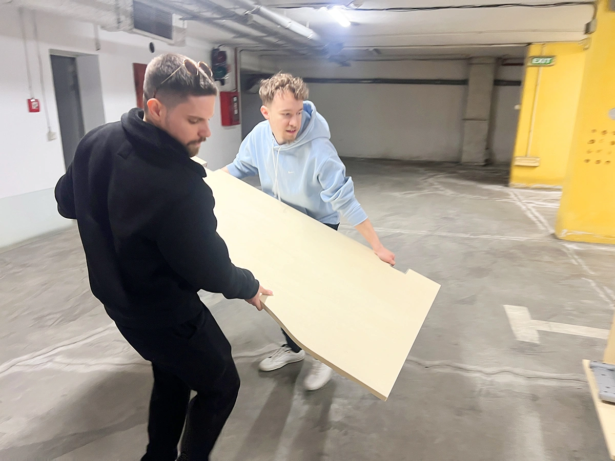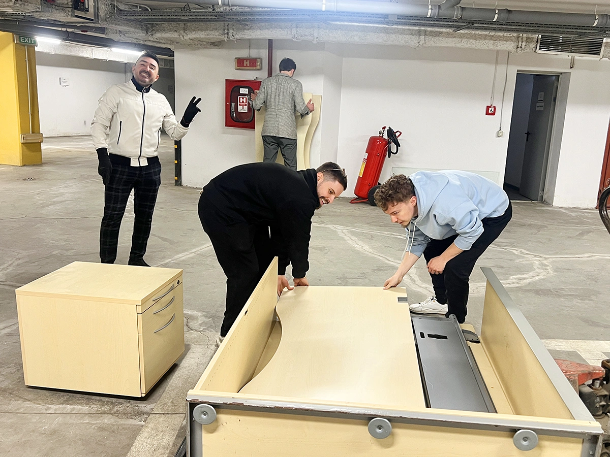 În timp ce o parte din club participa la Brunch-ul Cultural de la Muzeul Aman, o altă echipă de membri Rotary și colegi din Rotaract Club București s-a mobilizat pentru a încărca și transporta primul lot de mobilier, prin două transporturi diferite.